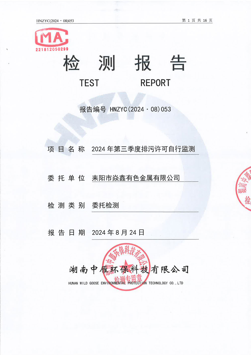 2024年第三季度排污許可自行監(jiān)測檢測報(bào)告